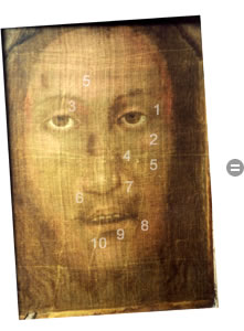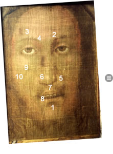 Trapistka Blandina Paschalis Schlömer, niemiecka farmaceutka i malarka ikon, odkryła zgodność rysów twarzy wizerunku na Sudarium i Całunie Turyńskim. Na podstawie punktów stycznych wykorzystała technikę tzw. suprapozycji. Nakładając na siebie folie z obrazem twarzy z Manoppello oraz twarzy z Całunu Turyńskiego dzięki ich zgodności dowiodła, że nałożone na siebie obrazy przedstawiają tę samą osobę. Później zastosowała tę technikę z takim samym skutkiem do Chusty z Oviedo.